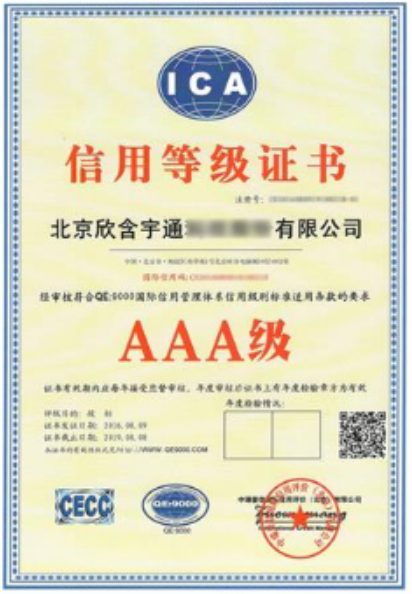 企業通過了AAA信用等級資質認證