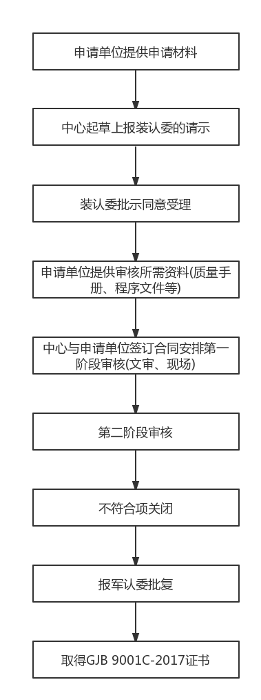 申請GJB 9001C-2017的流程是什么? 申請GJB 9001C-2017需要準備什么? ◆申請書 ◆企業法人營業執照副本或事業單位法人證書(經過年檢的) ◆組織機構代碼 ◆產品所在階段情況調查表 ◆軍方推薦函 GJB9001管理體系的建立和認證的過程有哪些? ◆顧客現狀及需求分析,國軍標、質量管理體系診斷,推行工作準備,方針和目標的設計,組織結構的設計,職能分配和職位職責的設計,體系文件架構設計業務流程的設計,GJB9001、ISO9001理念培訓,GJB9001、ISO9001實施培訓,有效/高效體系培訓,體系文件編寫,內審員培訓,體系文件編寫現場輔導,審查修訂文件(1),組織文件討論,審查修訂文件(2),文件審批和發布,體系運行總動員,體系文件實施培訓(文件記錄表管理),體系文件運行指導檢查,文件適用性修訂文件(3),管理層培訓,5S與現場管理培訓,模擬內部審核,顧客滿意度測量評估分析,管理評審,正式內部審核,體系糾正及改進,認證前應答技巧培訓,評審陪審,獲取證書、合同和發票。 ◆每年監督提醒,指導企業準備監督材料,獲取監督標識。 什么是初審? ◆初次審核分二個階段進行。第一階段審核主要涉及:文審、與軍代表或顧客座談、了解體系的建立與運行情況、確認審核范圍及標準刪減內容等。第二階段現場審核通常在第一階段審核提出問題關閉后進行,并與第一階段間隔時間不超過4個月,以審核計劃安排為準。第二階段審核是全部門、全產品、全過程、全要求覆蓋的符合性審核。 ◆獲準注冊的有效期為4年,認證周期以證書注冊時間為開始。在此期間通常進行3次監督審核(不含非例行),時間間隔不超過12個月一次。如果您選擇了瑞和信誠,每年監督前會提醒并輔助您做好監督準備工作,以免因為企業人事變動或者其他原因導致錯過監督時間而使證書失效,影響正常投標工作及其他市場工作。 |